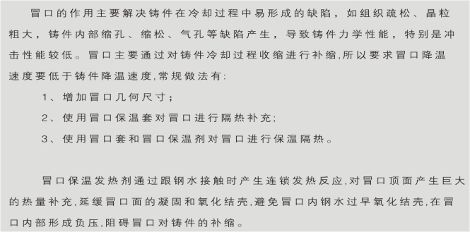 冒口保温发热剂应用背景: